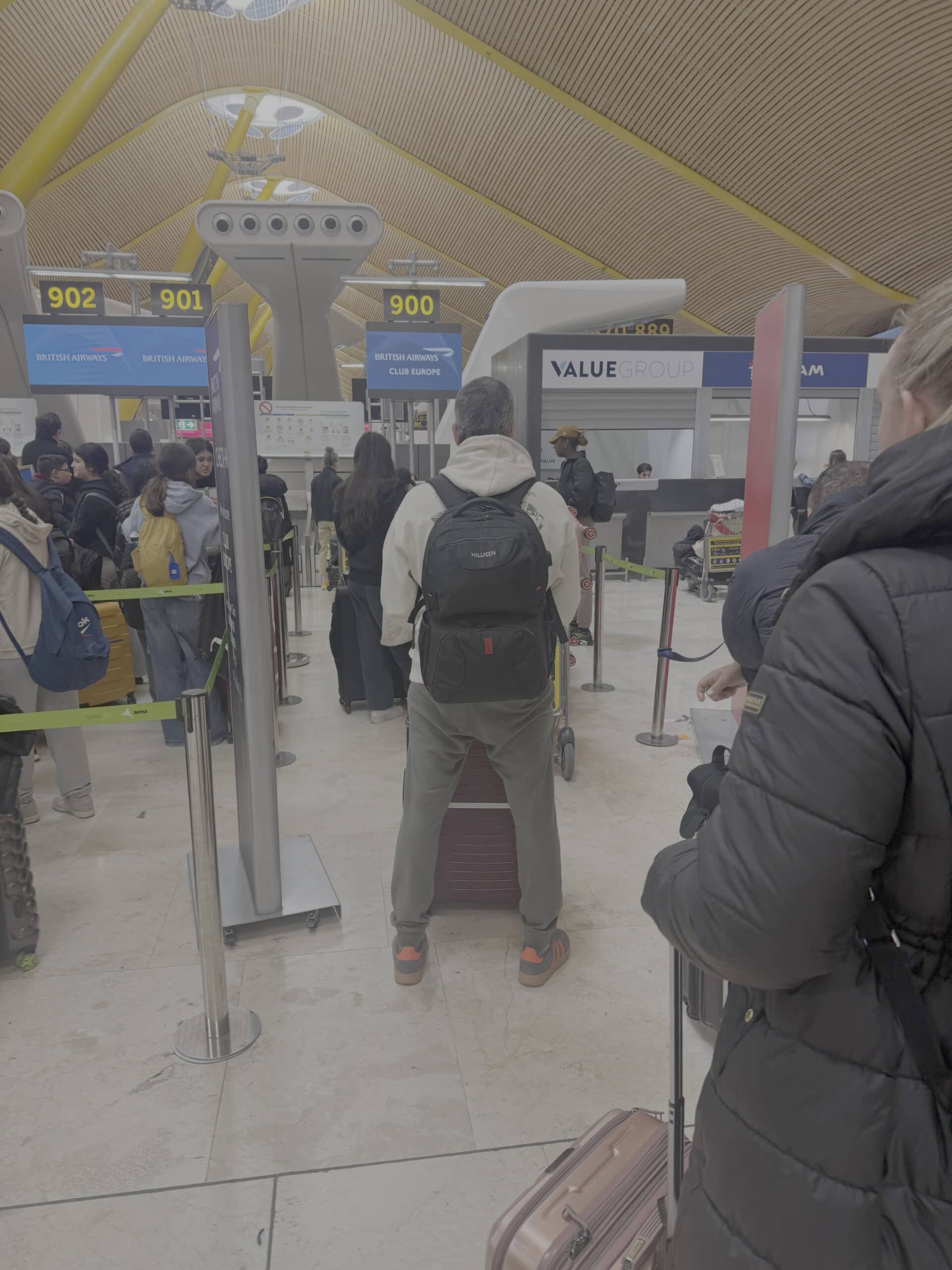 And then… I arrived at check in. There was one desk open for Club Europe, there were six people in front of me, and the three ladies at the front of the queue had ten bags each. EACH!