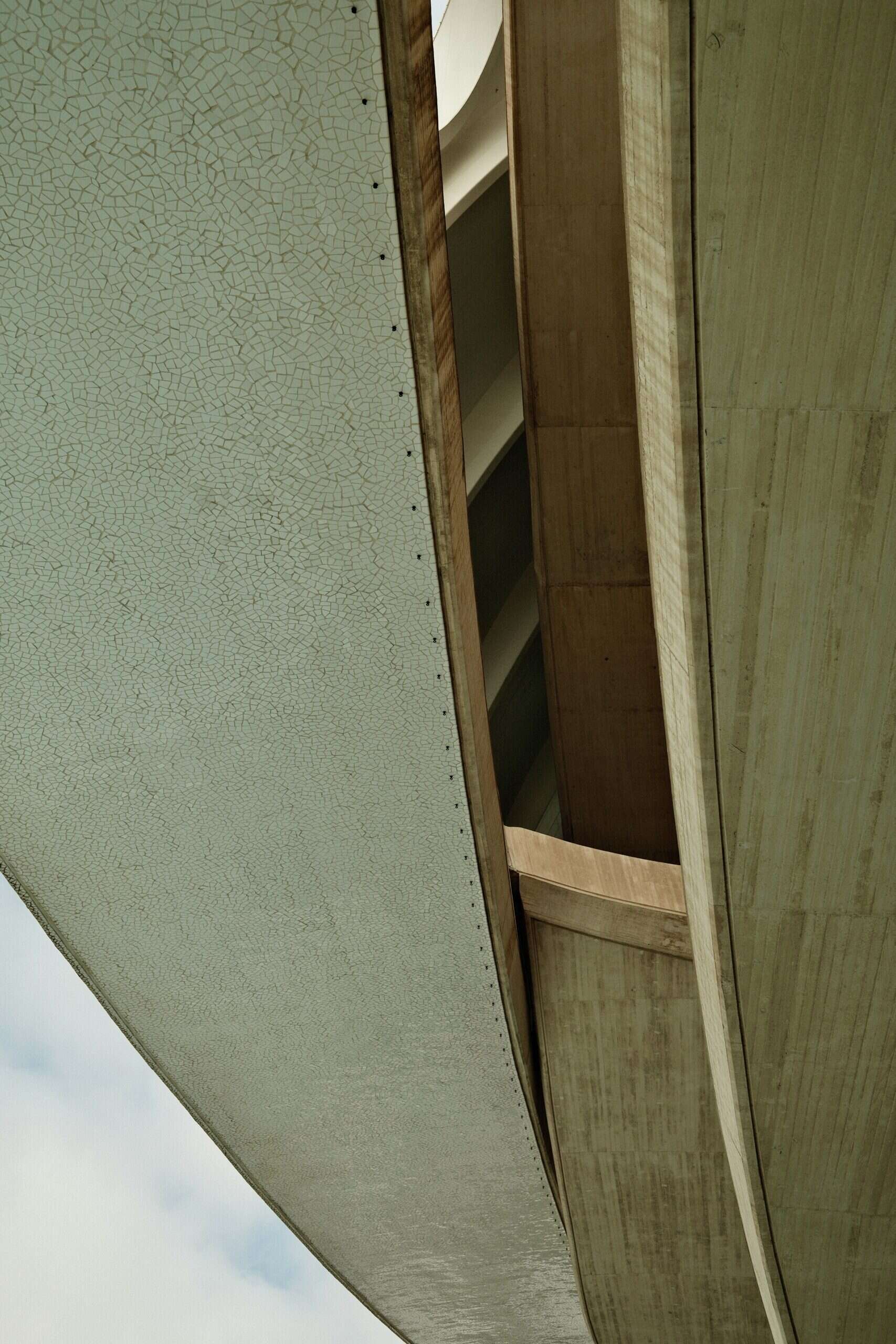 I parked my bike up and wandered around the bottom of the building. Everywhere I stopped I looked up and saw an amazing view. There were massive, sweeping curves. Hidden elements and little details.