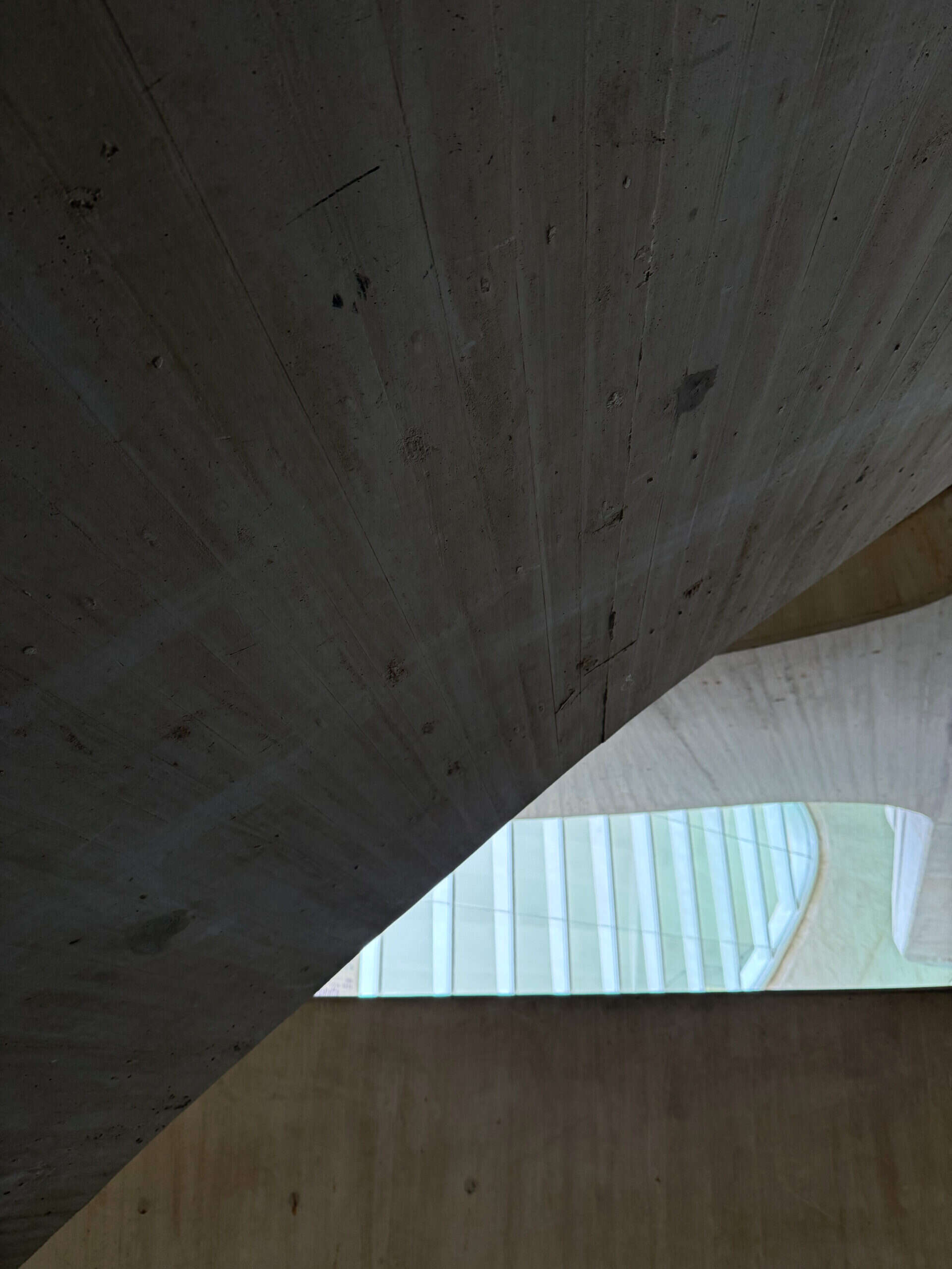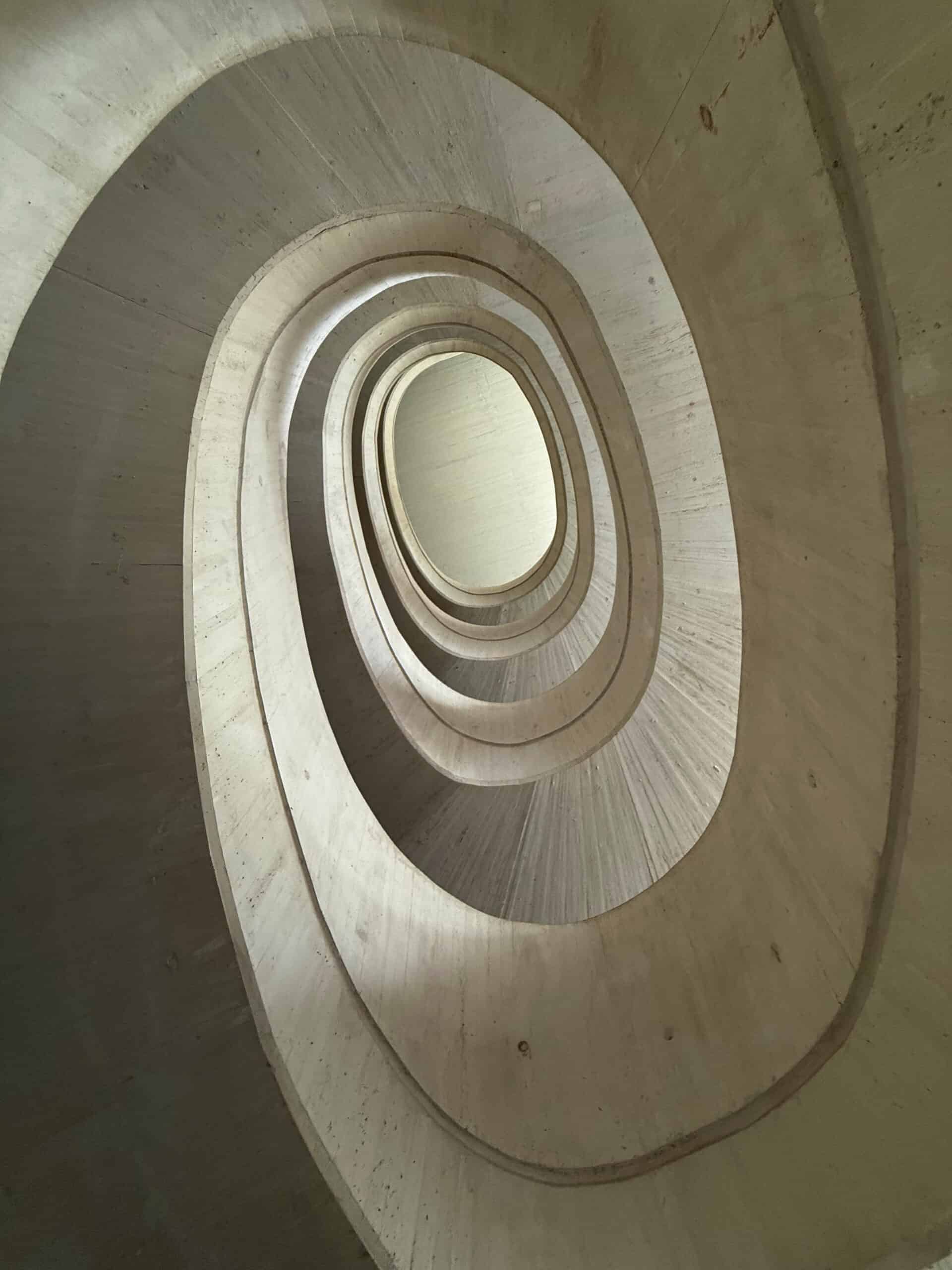 Walking around the ground floor I came to a curved staircase made from concrete.