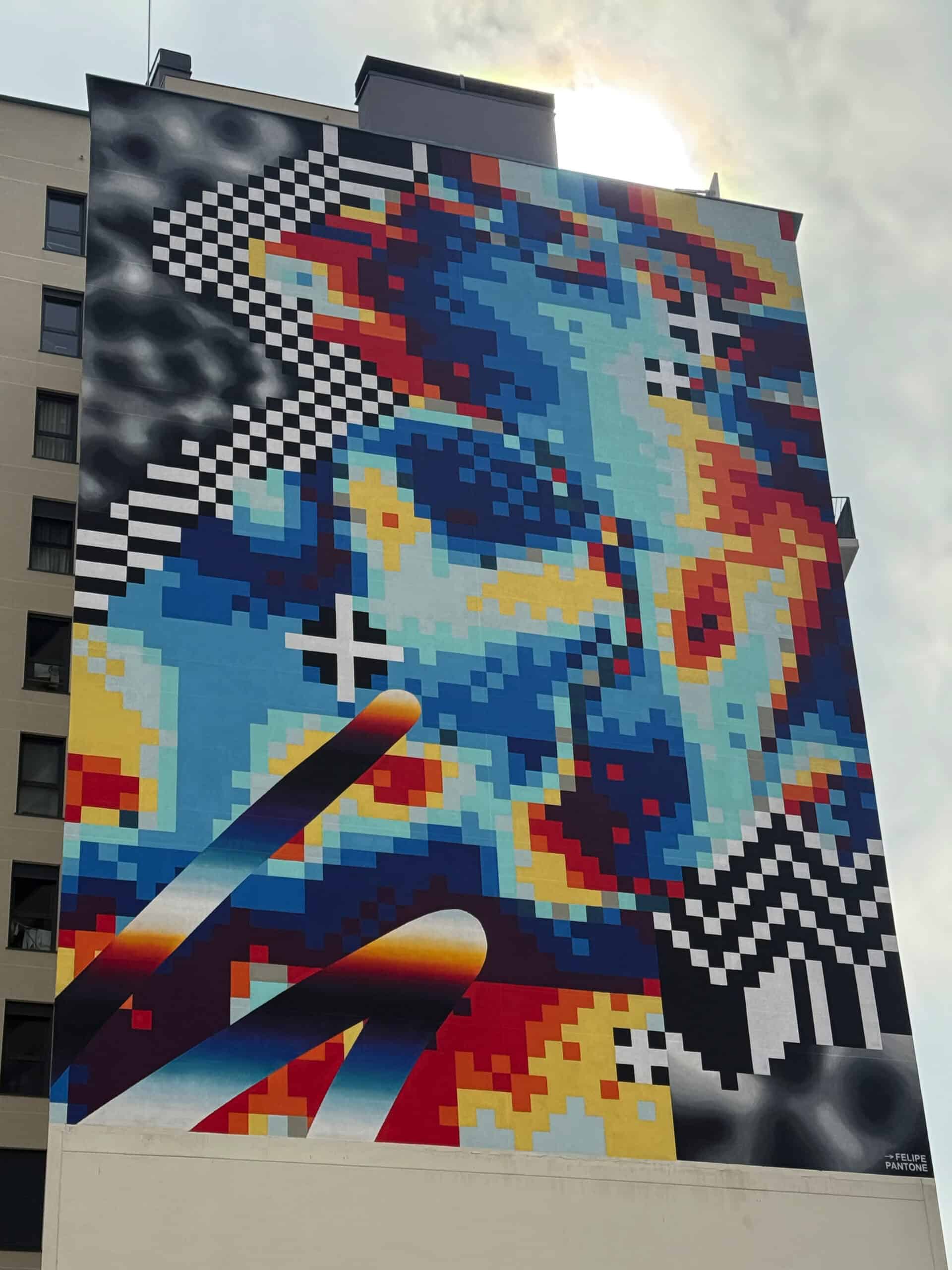 On my way back, I took a slight detour as I’d seen a building which I thought might be adorned with some art by a really cool artist I follow on Instagram. And I was right! The pixelated style of Felipe Pantone is pretty recognisable, but it was cool to see one of his works in the flesh.